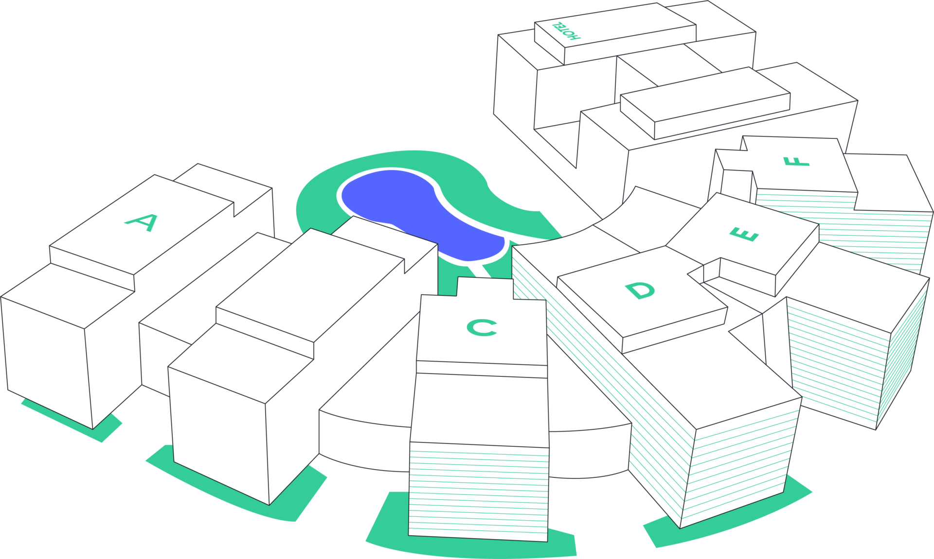 Un lugar de trabajo con amplias zonas verdes